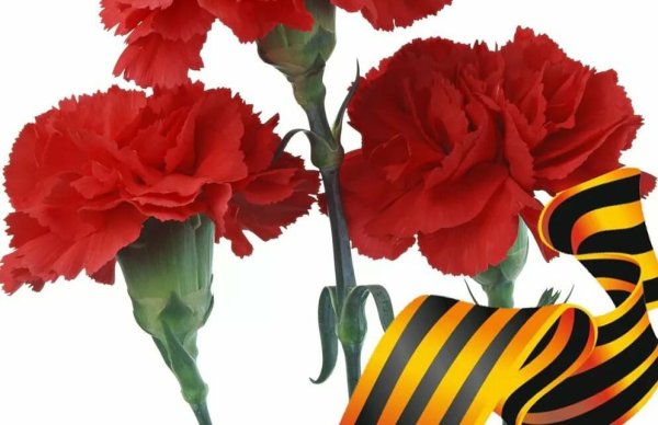 ![Георгиевская ленточка и гвоздики на прозрачном фоне]()