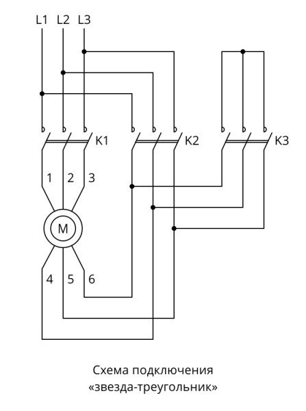 Схема подключения звезда-треугольник трехфазного электродвигателя