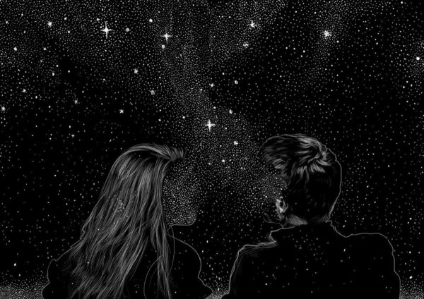 ![Пара на фоне звездного неба]()