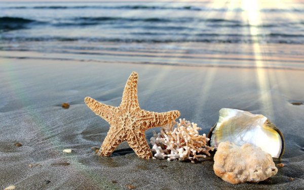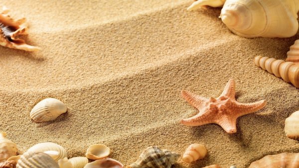 ![Пляж с ракушками и морской звездой]()