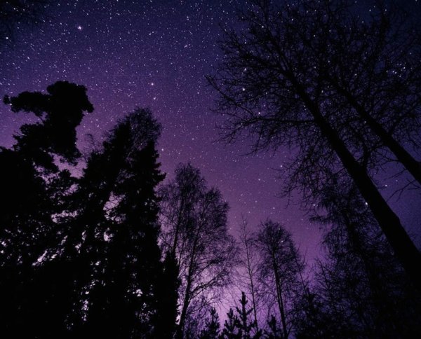 ![Ночное небо в лесу]()