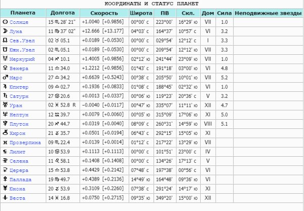 Координаты неподвижных звезд в астрологии
